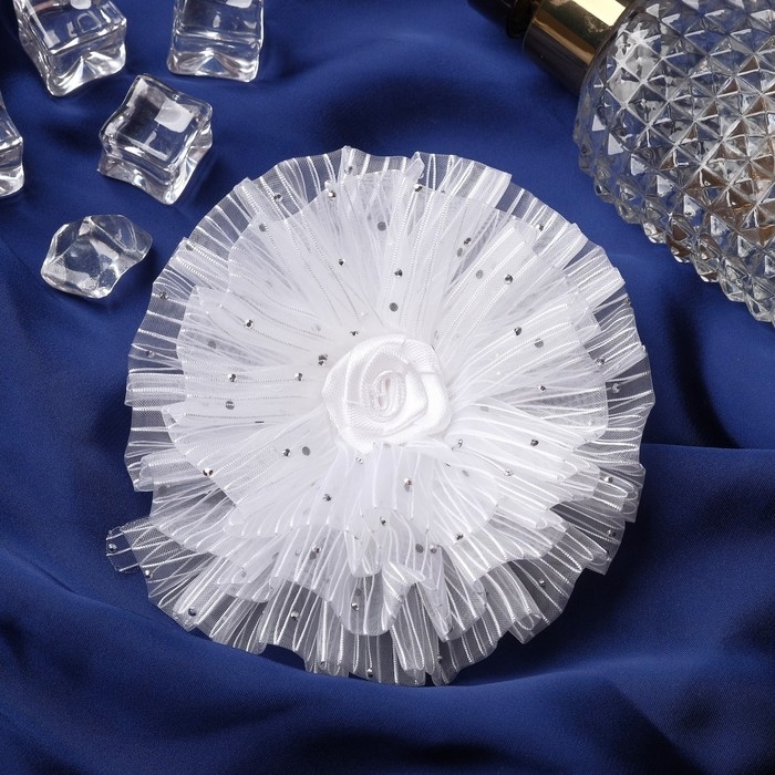 Резинка для волос бант "Школьница" волнушка роза полоски, d-11 см, белый