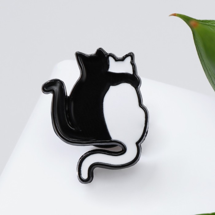 Значок «Коты» объятие, цвет чёрно-белый в чёрном металле