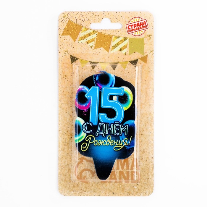 Свеча для торта "С Днем рождения", 15 лет,шары, 6,5 см