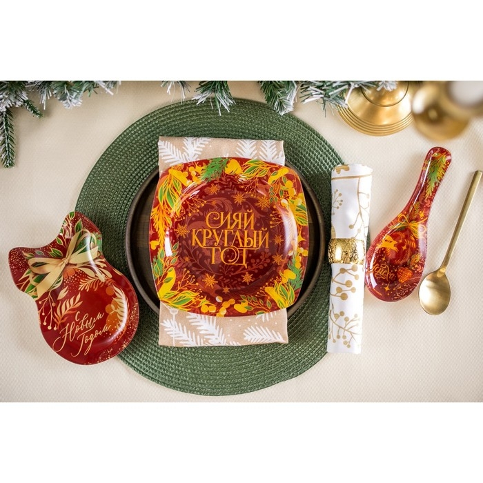 Новогодняя стеклянная подставка под ложку размером 21,4 х 7,5 см — отличный выбор для вашей кухни.