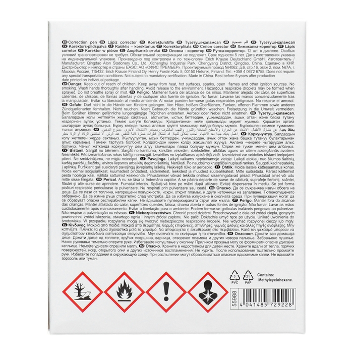 Ручка-корректор с быстросохнущей корректирующей жидкостью для точечных исправлений. Показывает отличный результат на всех типах и цветах чернил. Высококачественный металлический наконечник обеспечивает плавное движение и экономичный расход. Жидкость удобно наносить локально на необходимый фрагмент, создавая непрозрачный слой, незаметный на ксерокопиях. Морозостойкая. На основе растворителя. Перед применением жидкость необходимо взболтать с помощью внутреннего металлического шарика.