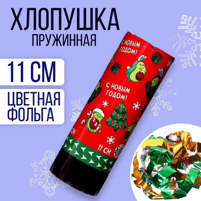Хлопушка пружинная поворотная «С новым годом» авокадо 11 см