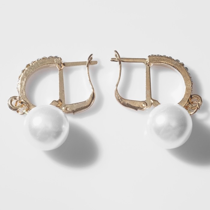 Серьги с жемчугом «Грейс» две бусины, цвет белый в золоте, шар №20