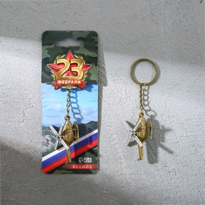 Брелок для ключей металлический «23 февраля», вертолёт, 11 х 2,5 см