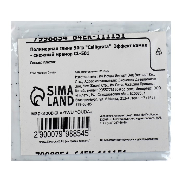 Полимерная глина 50 гр, Calligrata, Эффект камня - снежный мрамор