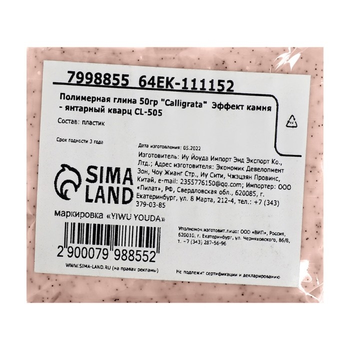 Полимерная глина 50 гр, "Эффект камня", янтарный кварц