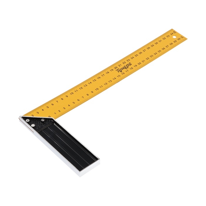 Инструмент выполнен из металла, благодаря этому угольник устойчив к механическим повреждениям.