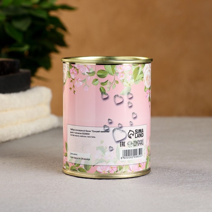 Набор в консервной банке "Лучшей мамочке" мыло + мочалка