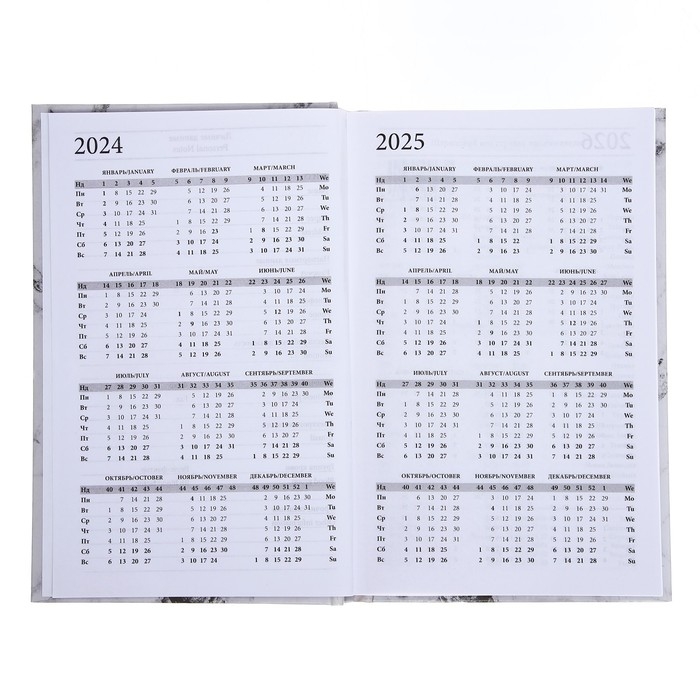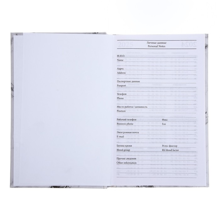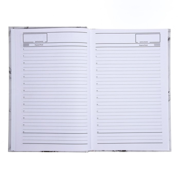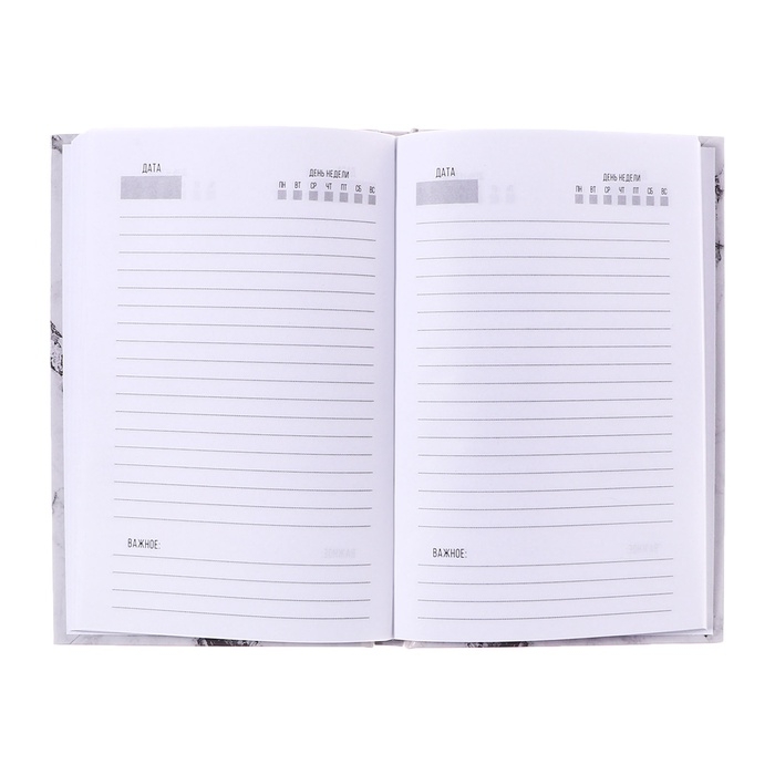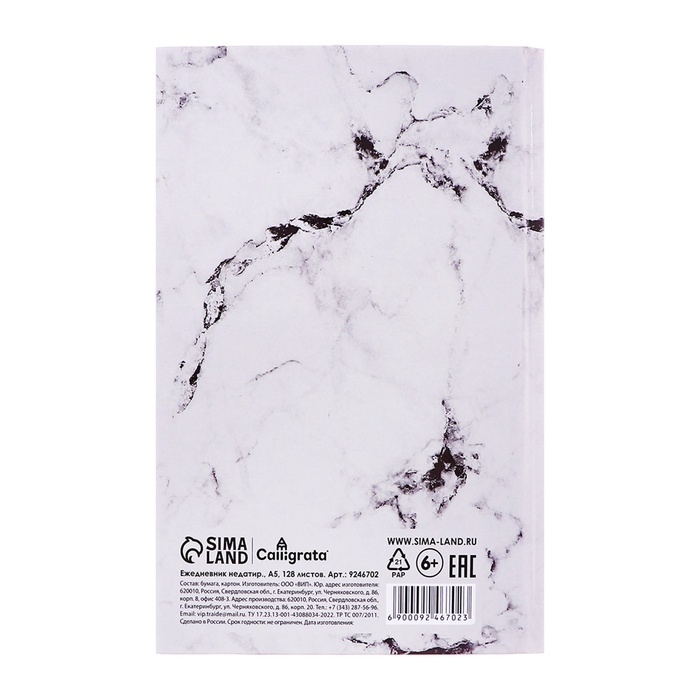 Ежедневник недатированный А5, 128 листов "БЕЛЫЙ МРАМОР", твёрдая обложка, глянцевая ламинация