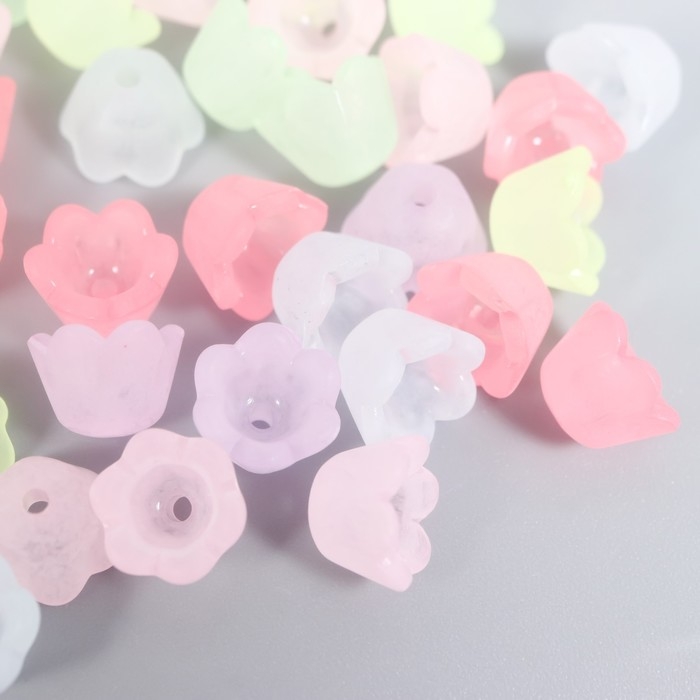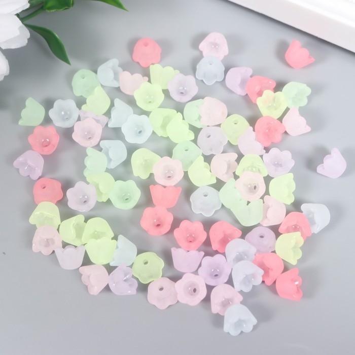 Бусины для творчества пластик "Цветок ландыша" набор 80 шт полупрозр. 0,9х0,9х0,7 см, МИКС