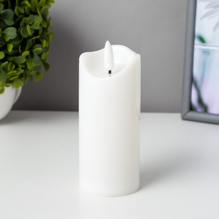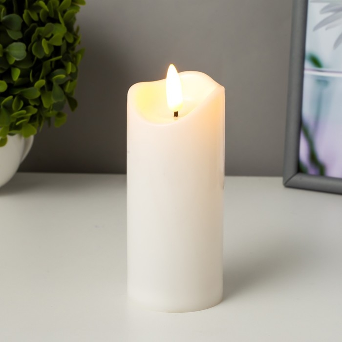 Эта свеча, выполненная в классической цилиндрической форме, станет прекрасным украшением вашего дома. Её мягкий свет создаст атмосферу тепла и умиротворения. Работающая от батареек, она мобильна и может быть размещена в любом удобном для вас месте. Идеальный выбор для создания комфортной и уютной обстановки, особенно в новогодние праздники.