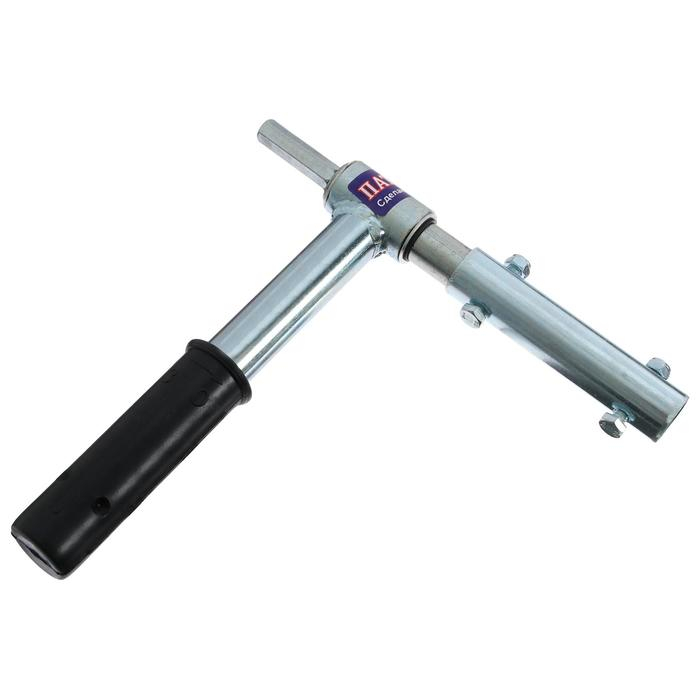 Адаптер – это стальной круглый вал, в котором просверлено отверстие для крепежа. С другой стороны адаптер заканчивается шестигранной головкой, предназначенной для фиксации переходника в патрон шуруповерта.