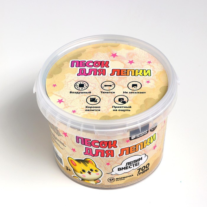 Воздушный, приятный на ощупь песок станет потрясающим подарком для любителей лепки, а формочка внутри окажется приятным бонусом.