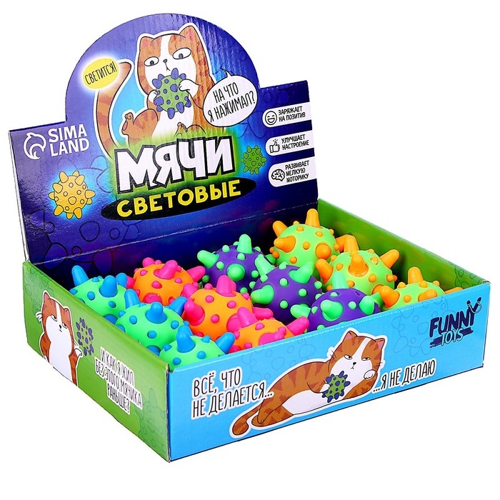 Мяч детский резиновый световой «Котик», цвета МИКС, в шоубоксе