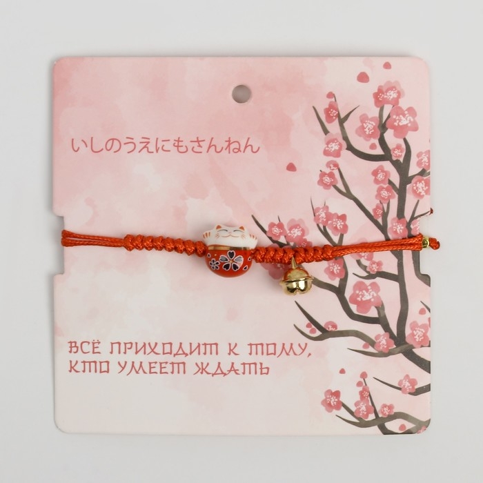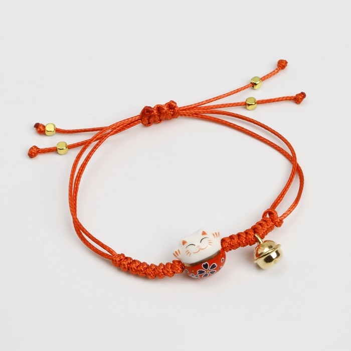 Браслет «Котик» нэко, цвет красный в золоте