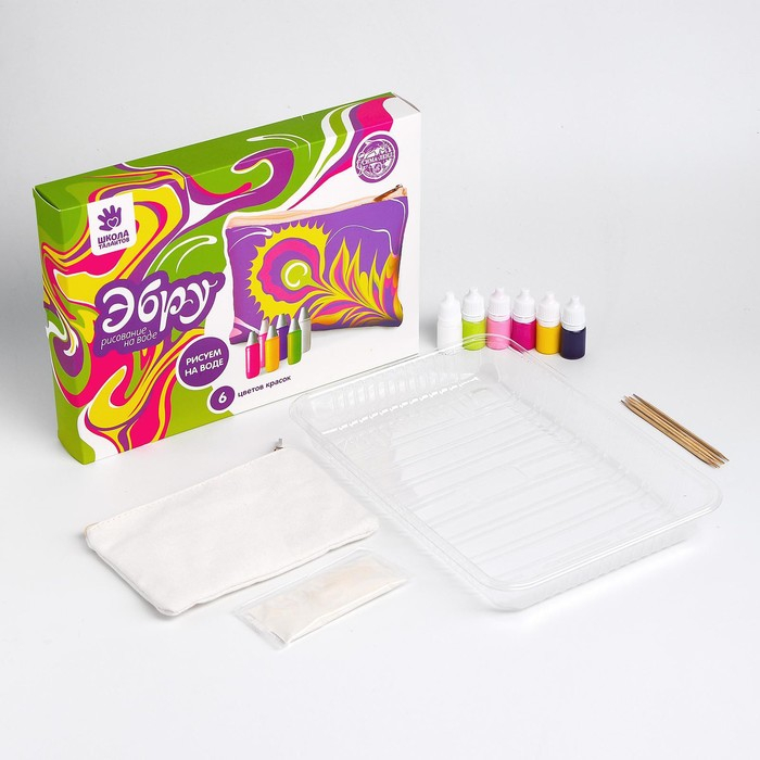 Набор для рисования эбру: краски 6 цв по 6 мл, 10 листов бумаги, загуститель 10 г, инструменты, поддон