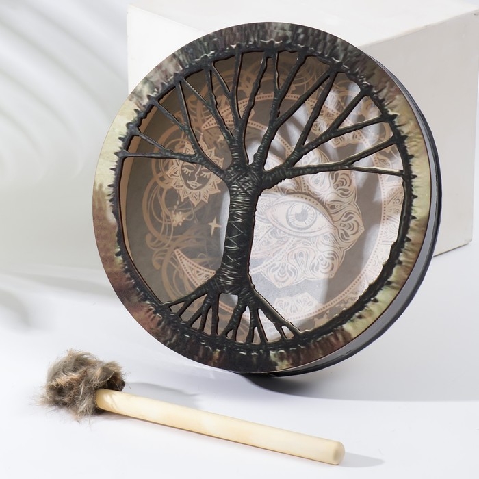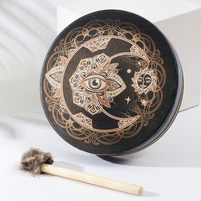 Шаманский бубен "Солнце, месяц и глаз" с колотушкой 5х25х25 см
