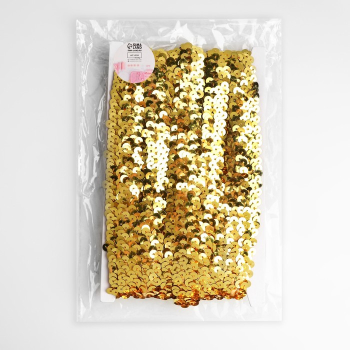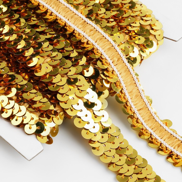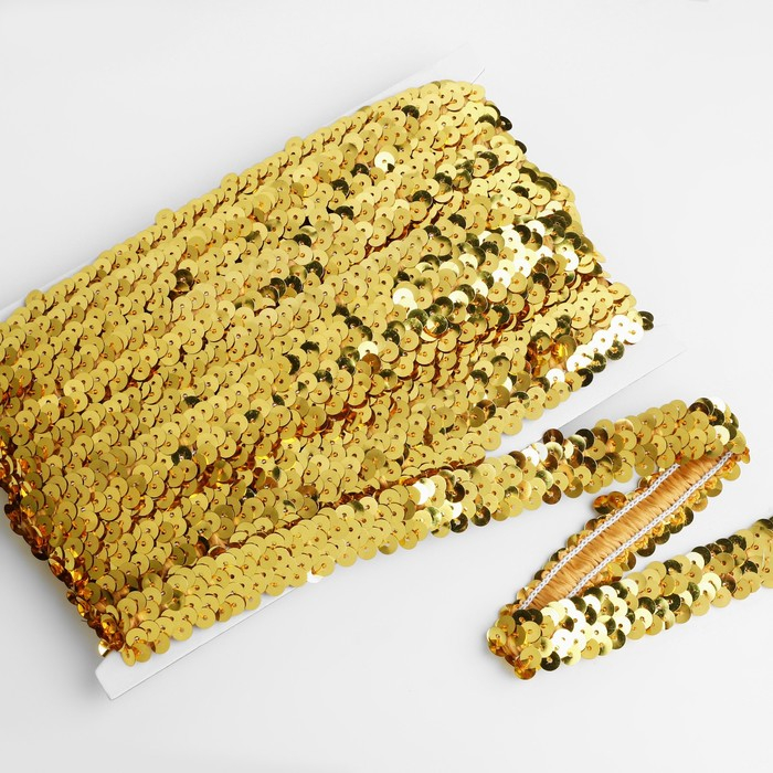 Тесьма декоративная с пайетками, на резинке, 2 см, 9 ± 0,5 м, цвет золотой
