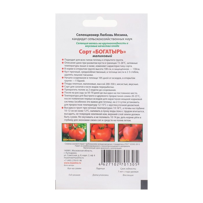 Семена Томат "Богатырь малиновый", 0,02 гр