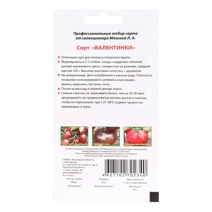 Семена Томат "Валентинки", 5 шт