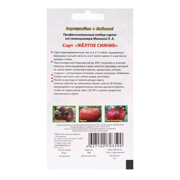 Семена Томат "Желтое сияние", 5 шт