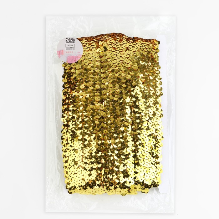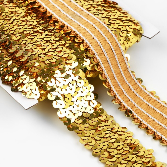 Тесьма декоративная с пайетками, на резинке, 3,5 см, 9 ± 0,5 м, цвет золотой