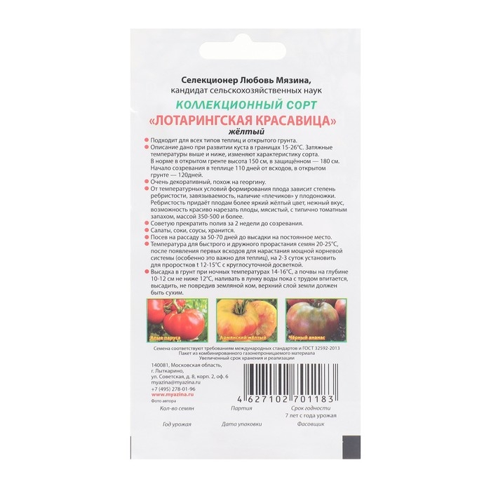 Семена Томат "Лотарингская красавица желтая", 5 шт