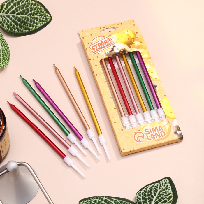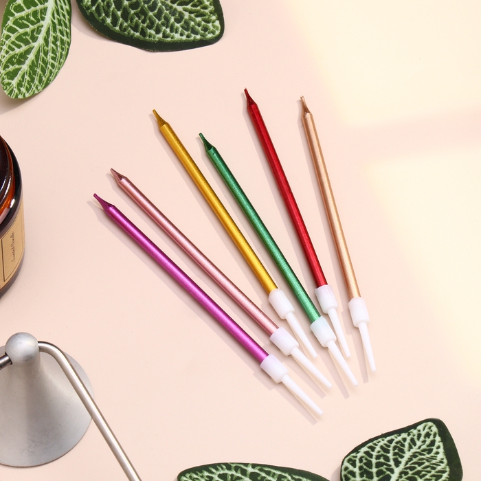 Свечи в торт коктейльные "Шайн", 6 шт, 10 см, металлик