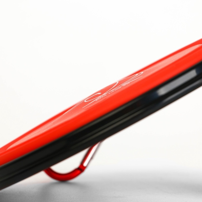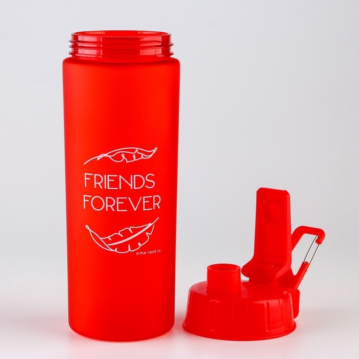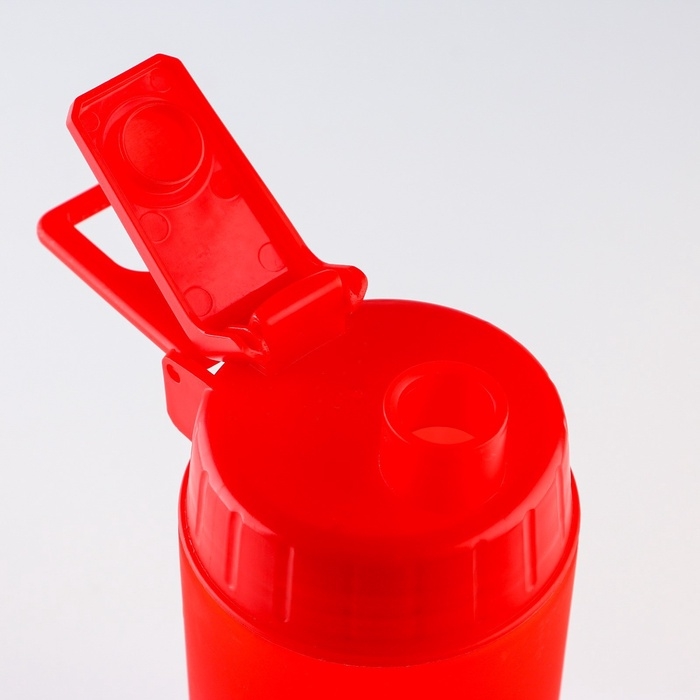 Изделие выполнено из прочного пластика и имеет покрытие софт-тач, которое не даёт бутылке скользить в руке. Крышка плотно защёлкивается, не допускает протекания. Карабин позволяет прикрепить поилку к поясу или рулетке.