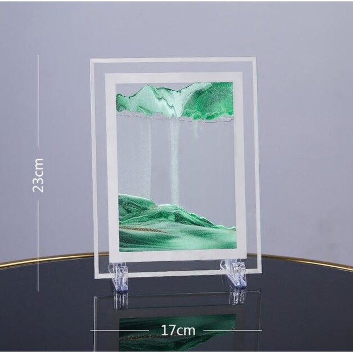Вы воздействуете одним прикосновением, когда рамка переворачивается, песок начинает произвольно струиться вниз, огибая пузырьки жидкости, образуя удивительной красоты пейзажи. Наблюдение за этим процессом позволяет человеку расслабиться, отдохнуть, успокоить нервы.