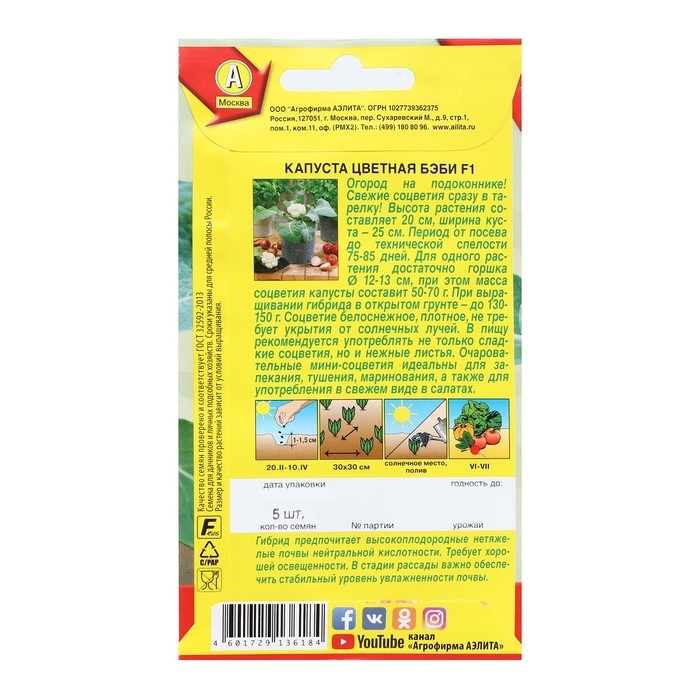 Семена Капуста цветная "Бэби", F1, 5 шт