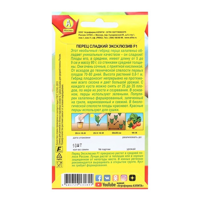 Семена Перец сладкий "Эксклюзив", F1, 10 шт