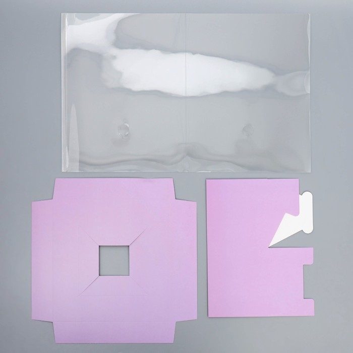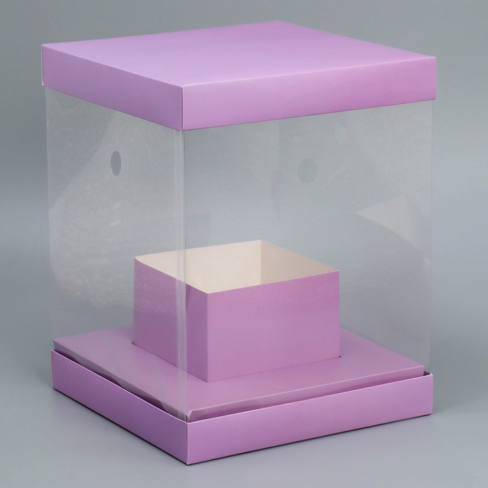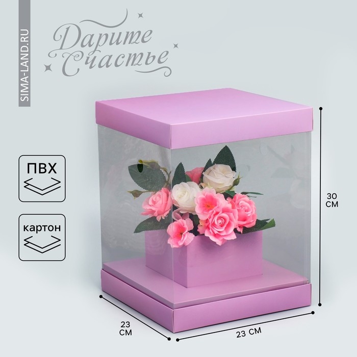 Коробка подарочная для цветов с вазой и PVC окнами складная, упаковка, «Лаванда», 23 х 30 х 23 см