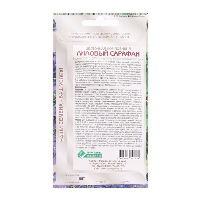 Семена Цветов Цветочная композиция Лиловый Сарафан, 8 шт
