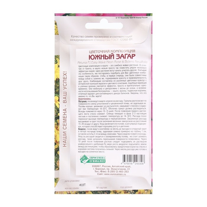 Семена Цветов Цветочная композиция Южный Загар, 4 шт