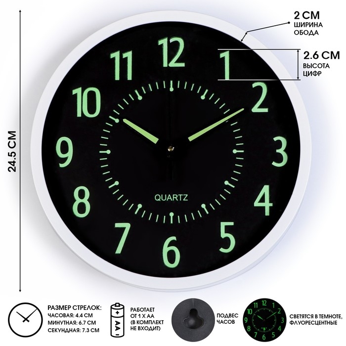 Настенные флуоресцентные часы - идеальное решение для создания стильного и уютного интерьера. Эти часы - настоящая находка для тех, кто ценит качество и неповторимый дизайн. Настенные часы - это не только функциональный предмет, но и настоящий декоративный аксессуар. Они прекрасно впишутся в любой интерьер, будь то кухня, гостиная, спальня или детская комната. Благодаря своему дизайну, они подчеркнут стиль и гармонию вашего дома.