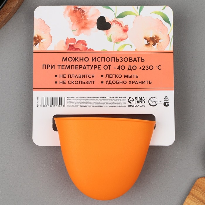 Прихватка для горячего «Готовь с душой», силикон, 11 х 8.3 см, цвет оранжевый