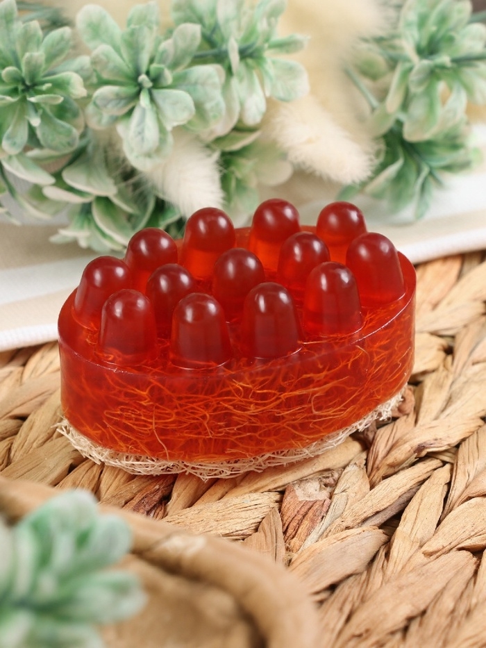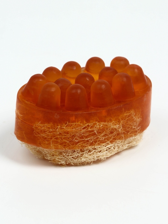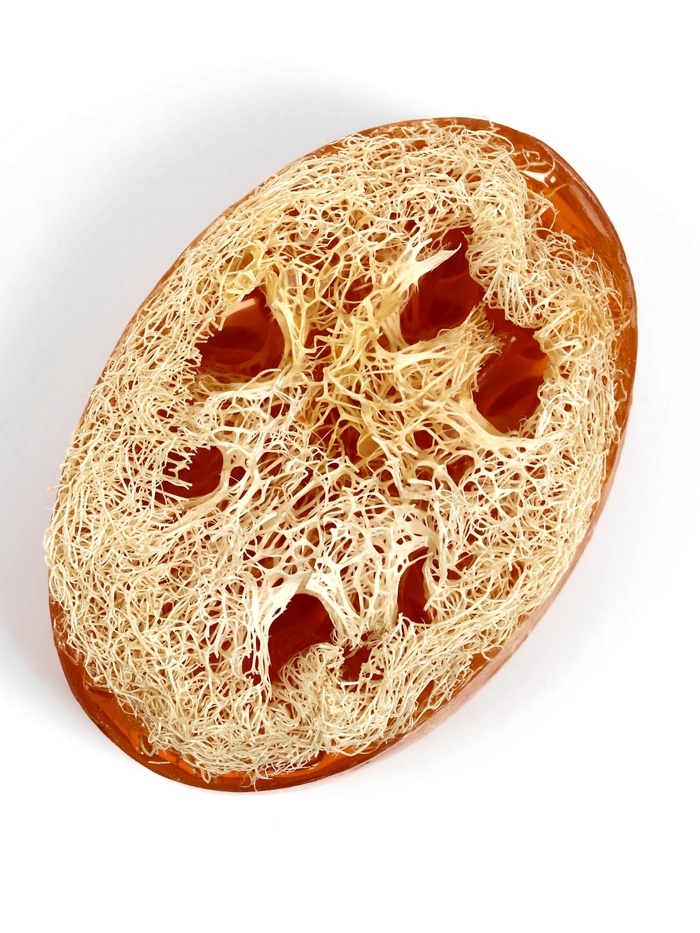 Мыло с люфой одновременно очищает кожу и скрабирует её. Это натуральное экологичное средство гигиены не вызывает аллергии.