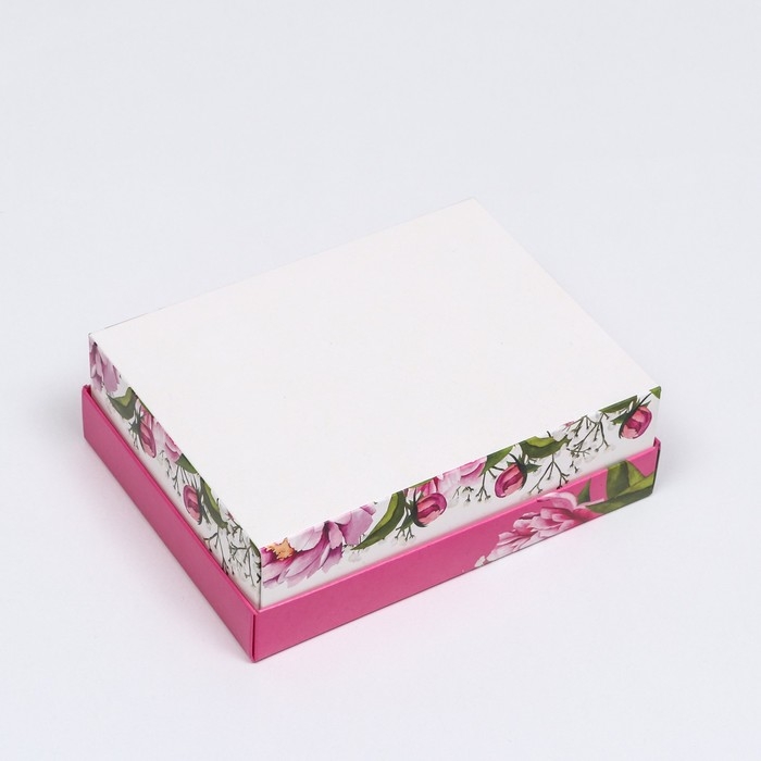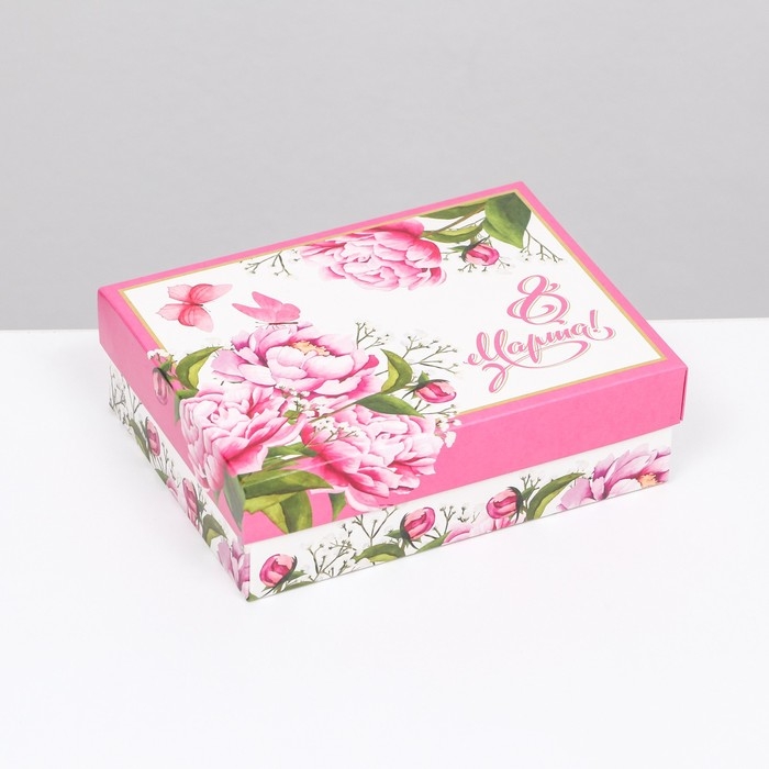 Подарочная коробка "8 марта, пионы", розовая, 16,5 х 12,5 х 5,2 см