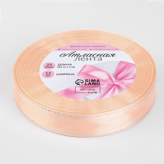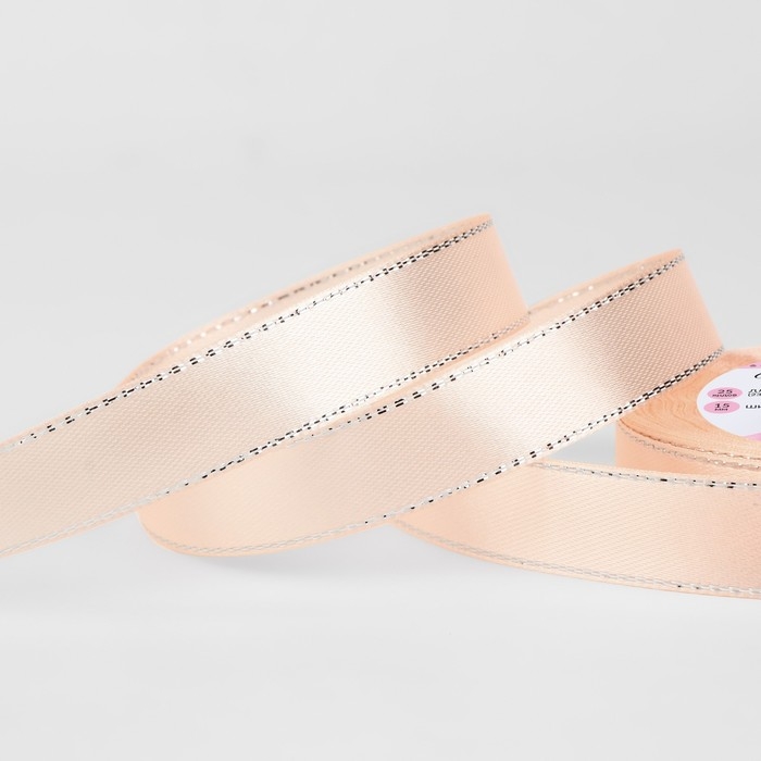 Лента атласная «Серебряные нити», 15 мм × 23 ± 1 м, цвет нежно-персиковый №007