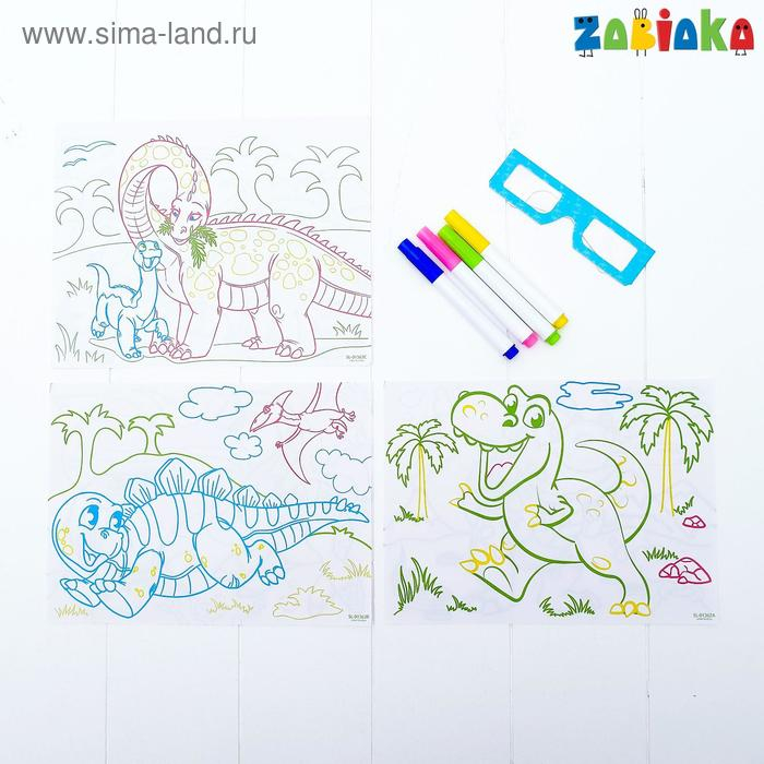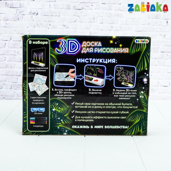 3D-доска для рисования неоновыми маркерами «Эра динозавров», световые эффекты, с карточками