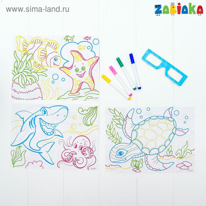 3D-доска для рисования неоновыми маркерами «Подводный мир», световые эффекты, с карточками