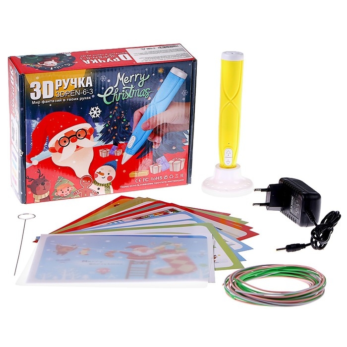 3D ручка «Новый год» набор PСL пластика, мод. PN007, цвет жёлтый