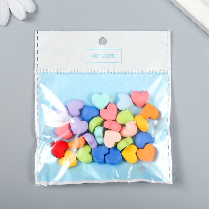 Декор для творчества пластик "Матовое сердечко" набор 30 шт МИКС 0,6х1,2х1,3 см