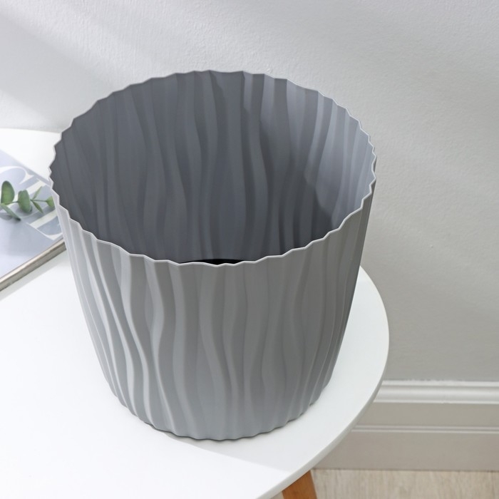 Кашпо для цветов со вставкой «Волна», 8 л, d=25 см, h=21,5 см, цвет серый