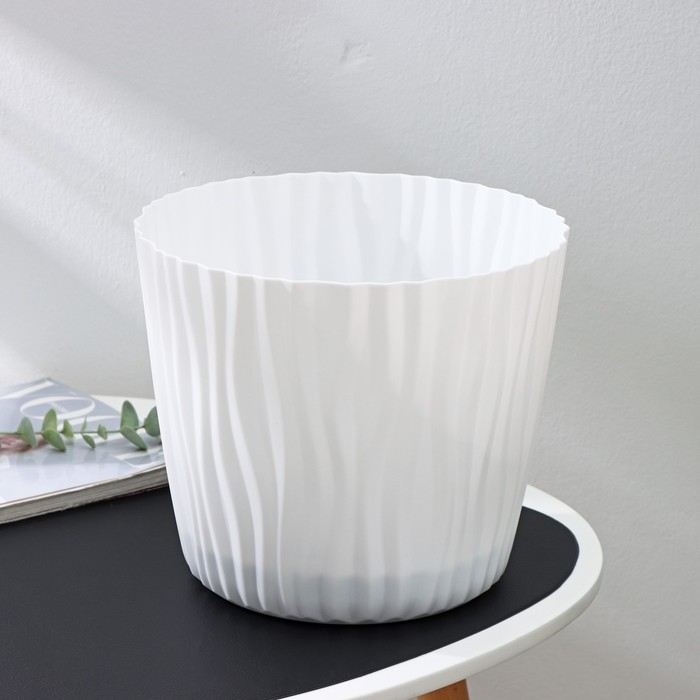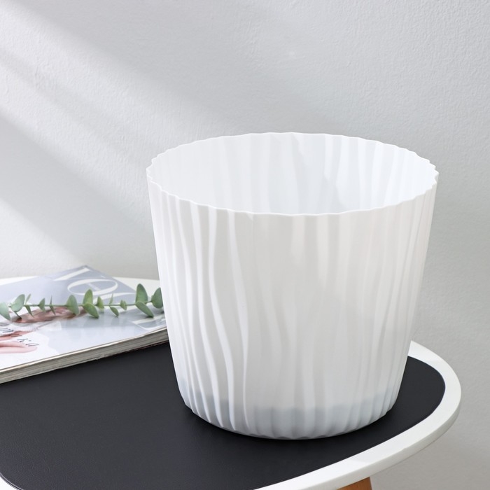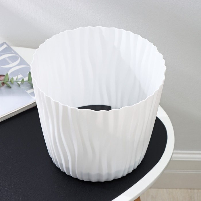 Кашпо для цветов со вставкой «Волна», 8 л, d=25 см, h=21,5 см, цвет белый