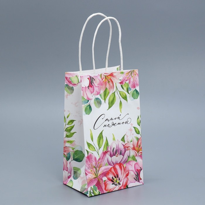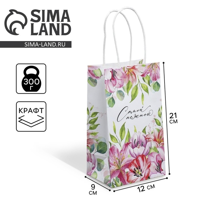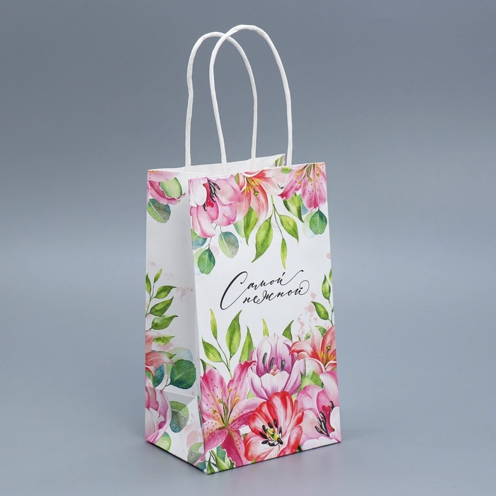 Пакет подарочный крафтовый, упаковка, «Самой нежной», 12 х 21 х 9 см