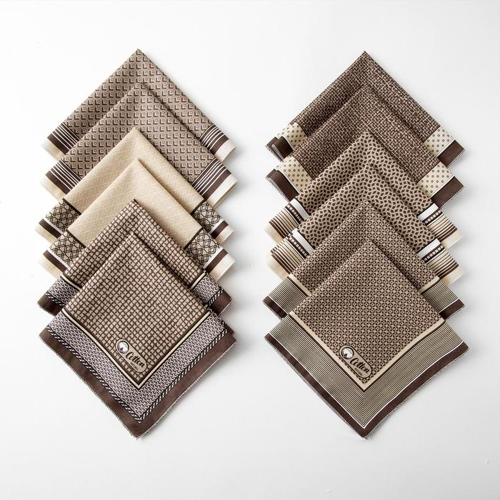Платки носовые мужские Этель "Серджио" 30*30 см,(набор 12 шт,) цв.коричневый, рис. МИКС