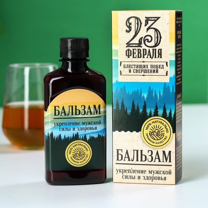 Бальзам с мумиё «С 23 февраля»: шиповник, черноплодная рябина, боярышник, смородина, календула, зверобой, 100 мл.