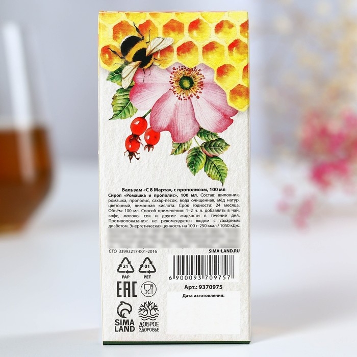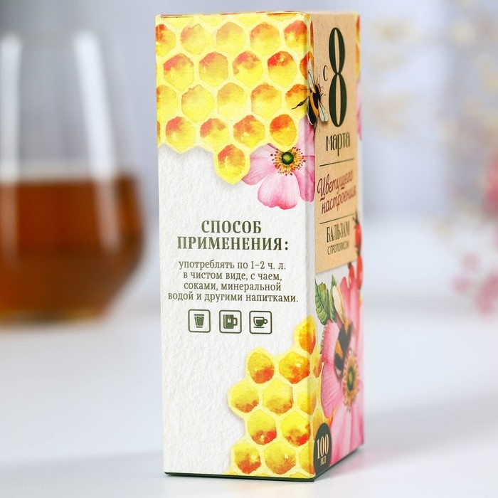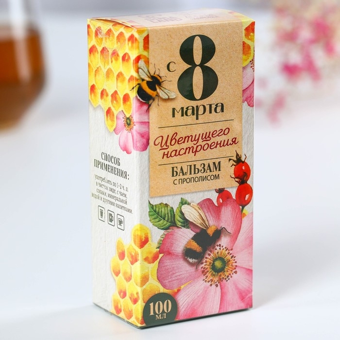 Бальзам с прополисом «С 8 марта»: шиповник, ромашка, натуральный цветочный мёд, 100 мл.